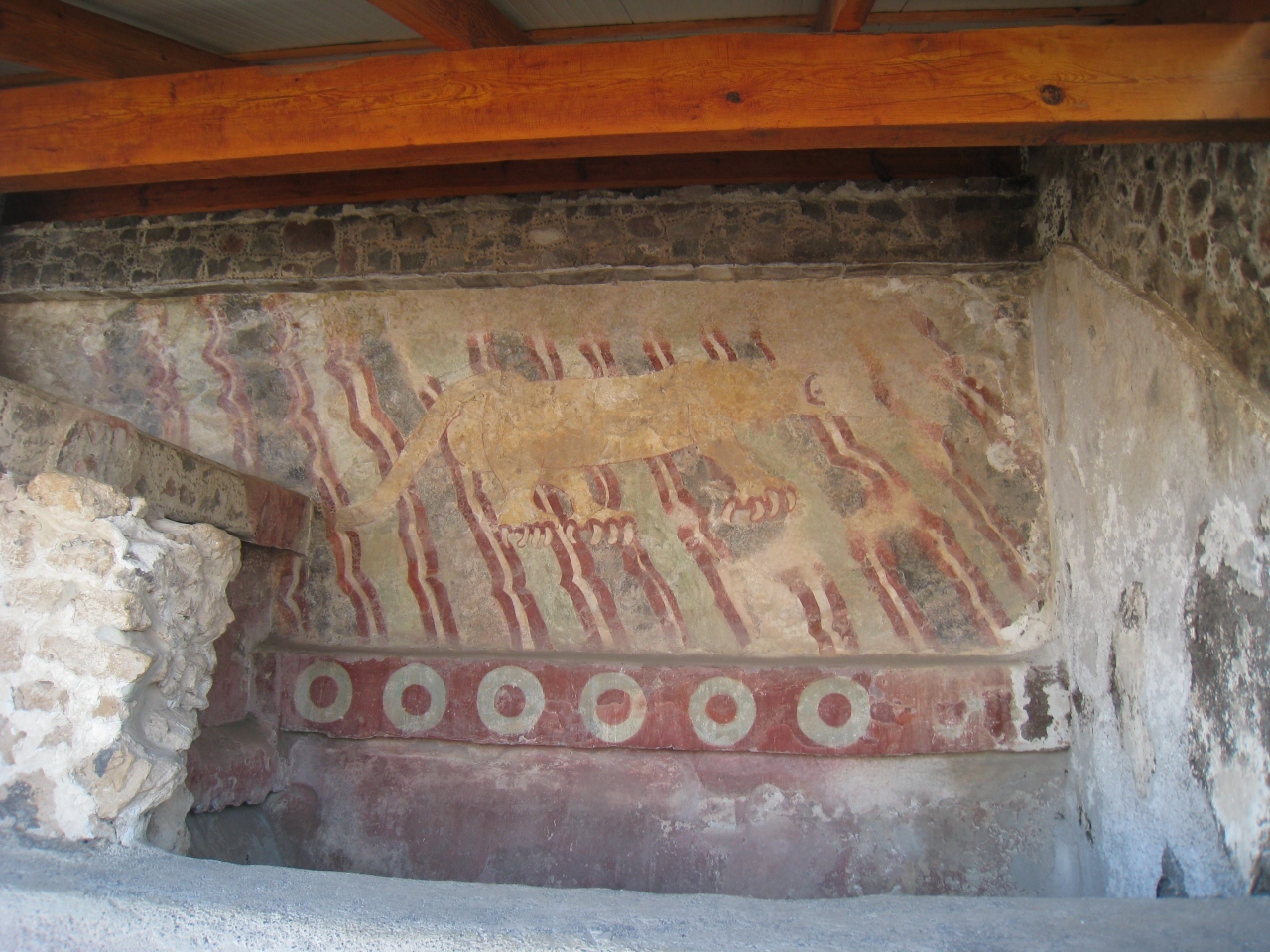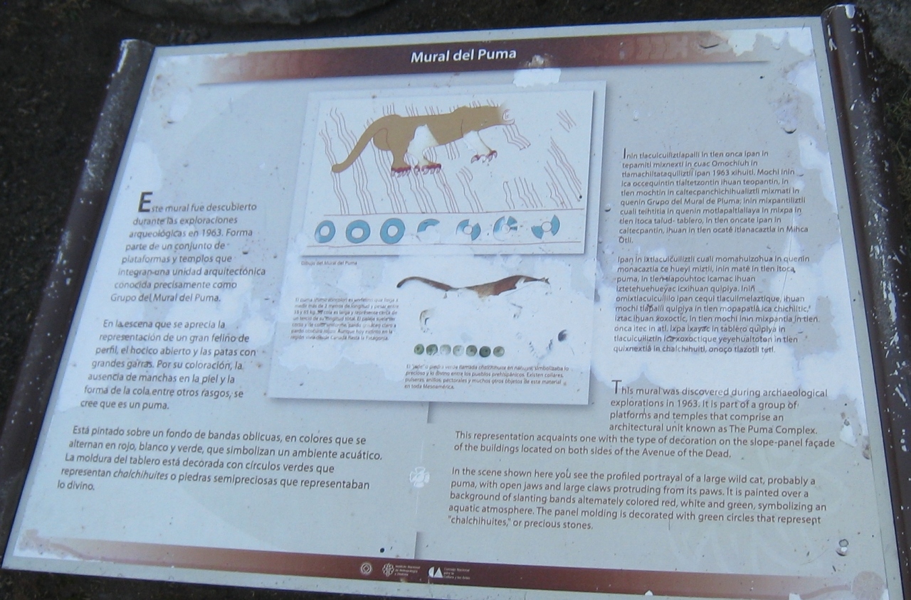 太陽のピラミッドと月のピラミッドの間には、ピューマの壁画があります。