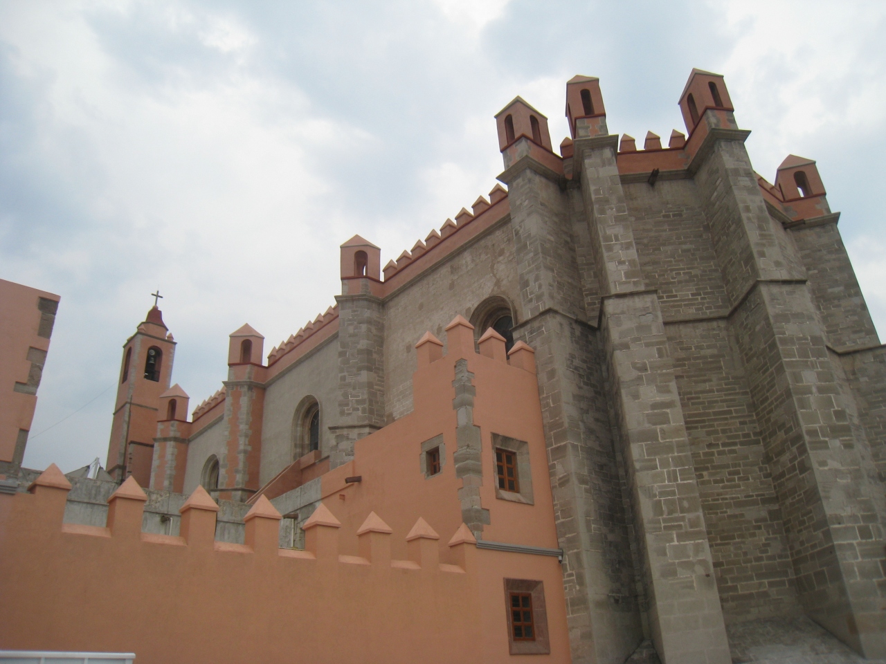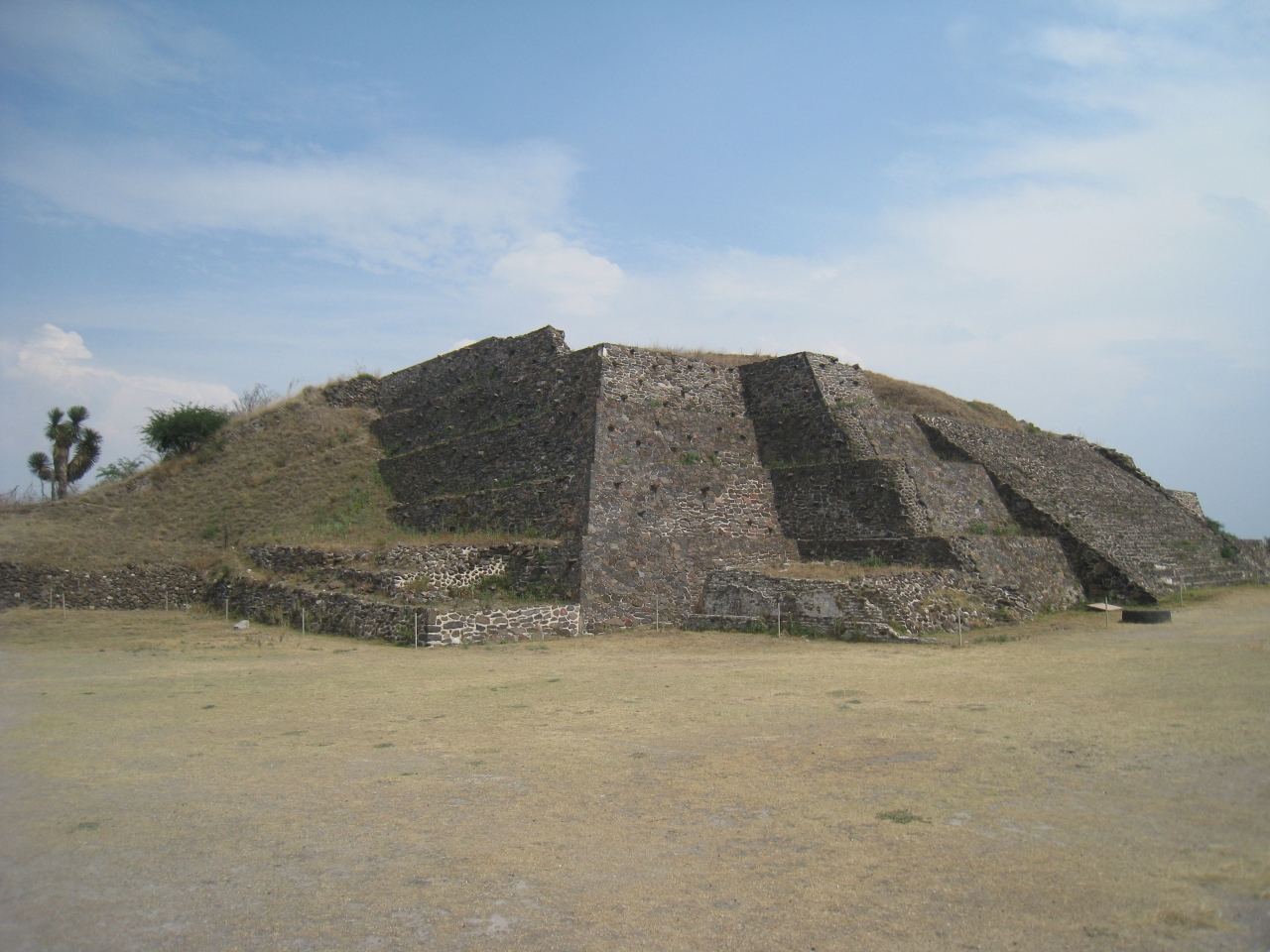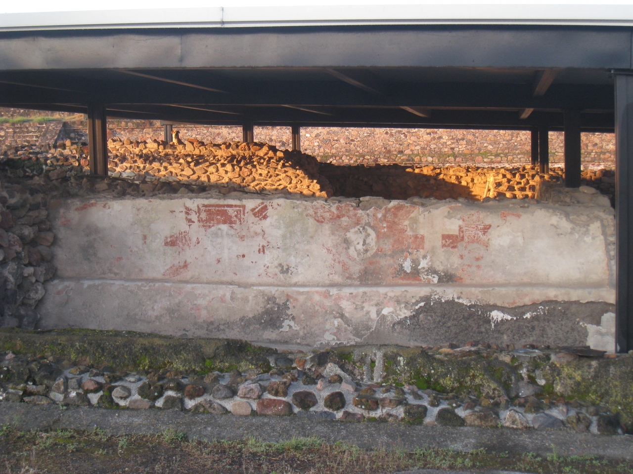 タルータブレロ様式と呼ばれる、垂直パネルの上に傾斜した石の壁を公募に積み上げていった様式が見て取れます。