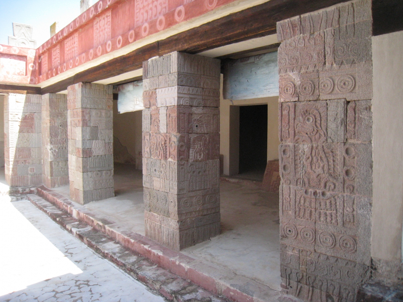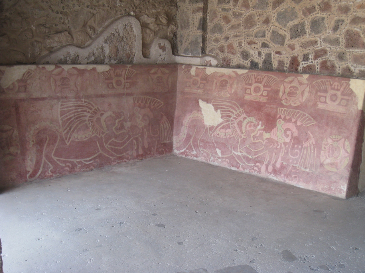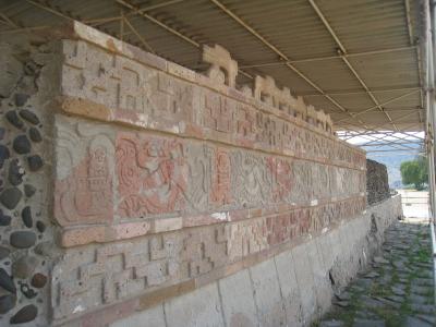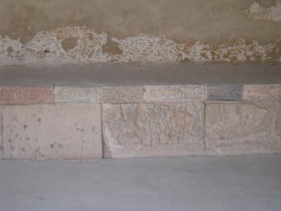 大広場の南側には屋根で保護されたEdificio surにはかすかに紅色の壁画が残されており、神殿創建当時はカラフルに菜食されていたのではと想像できます。