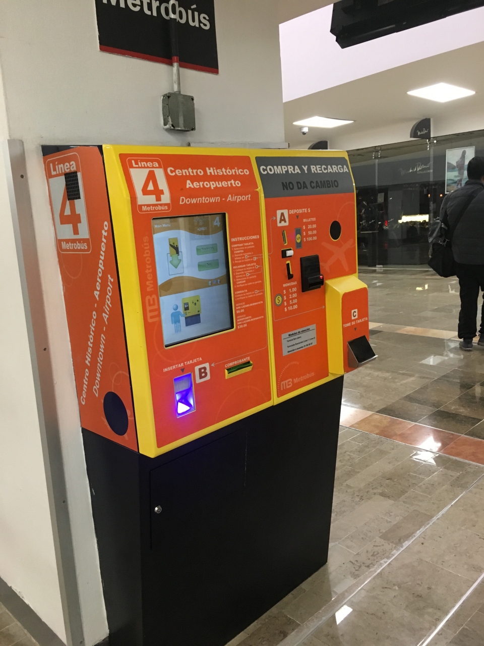 インフォメーションの裏にあった自販機でカードを購入してメトロバス4号線でソカロ方面に向いました。