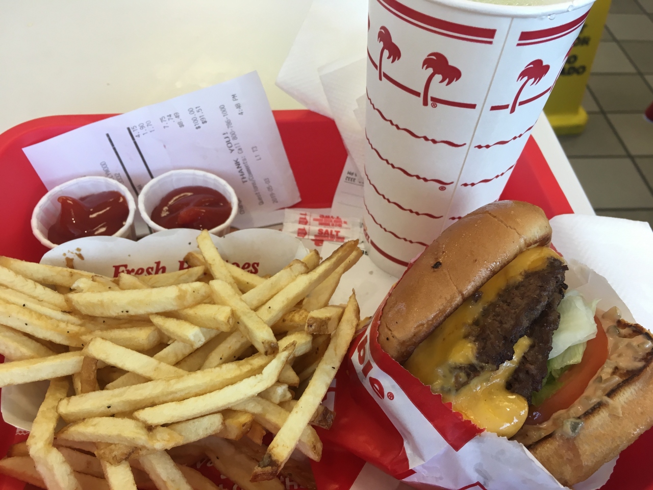 バーガーの味が薄いと思ったら、ケチャップで味調整すること。