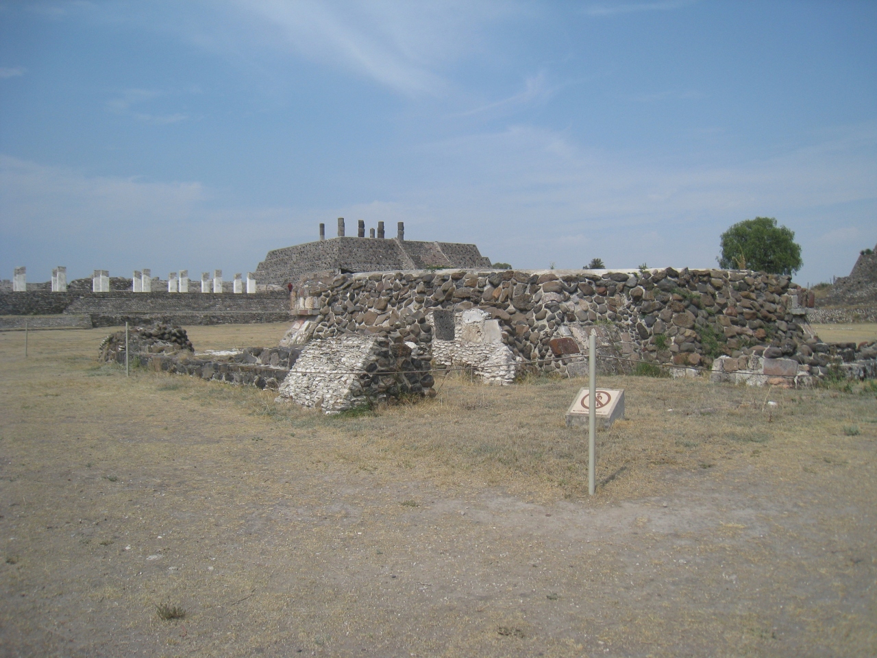 ピラミッドBの西側には焼けた宮殿があり、ピラミッド前まで多くの柱が立ってます。