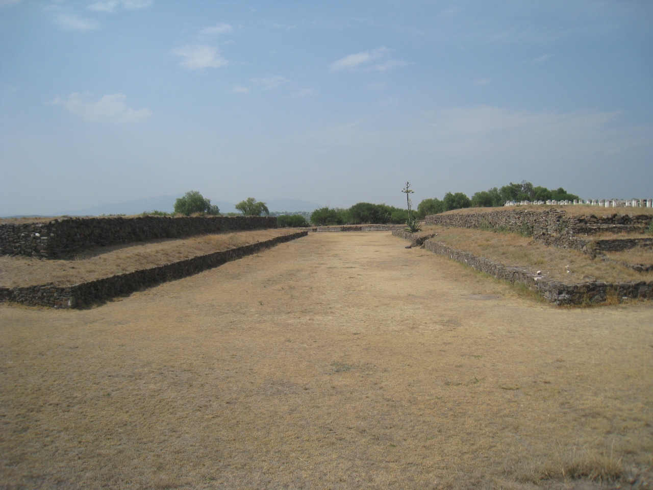 遺跡の中心地に進んでいくと、右手に球技場1、左手にピラミッドBの裏側が見えます。