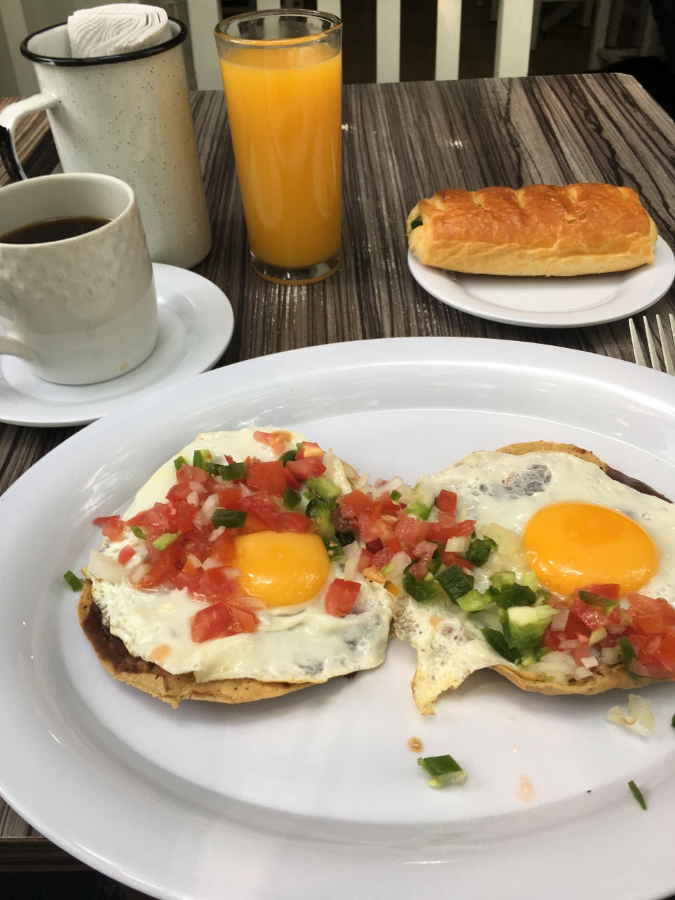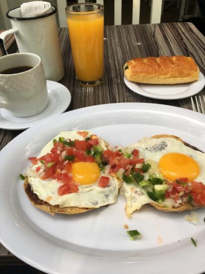 その後出てきたhuevos Yucatanは見た目は目玉焼きのトルティーヤのよう。