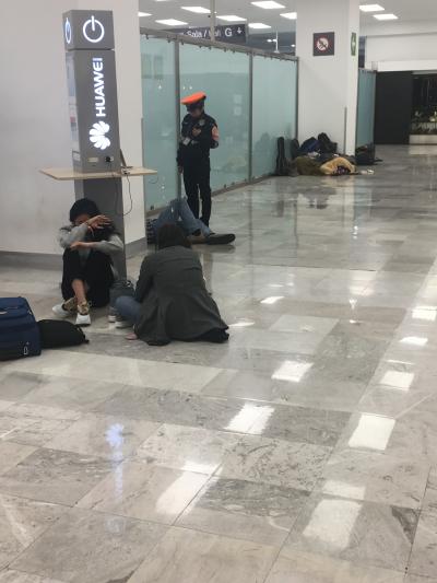 出発フロアを歩いてみると、早朝なので寝ている人が多かったが、それを警官が起こしていました。