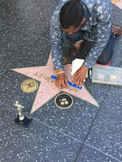 チャイニーズシアターの手形足形と比べれば、星に名前と映画などのマークが記されているだけなので味気ない。