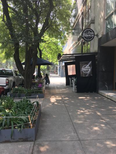 チャプルテペック駅を出て、南東にあるスペイン公園方面へベラクルス通りを進んでいき、Doña Blancaに到着。