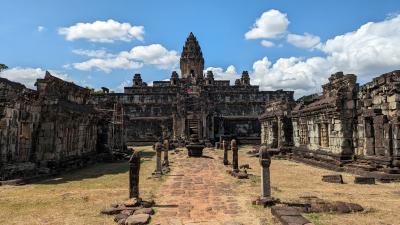 5層の基壇とその上に中央祠堂を持つピラミッド型で、周りを環濠で囲まれるスタイルは、のちのアンコールワットの原型と言われています。