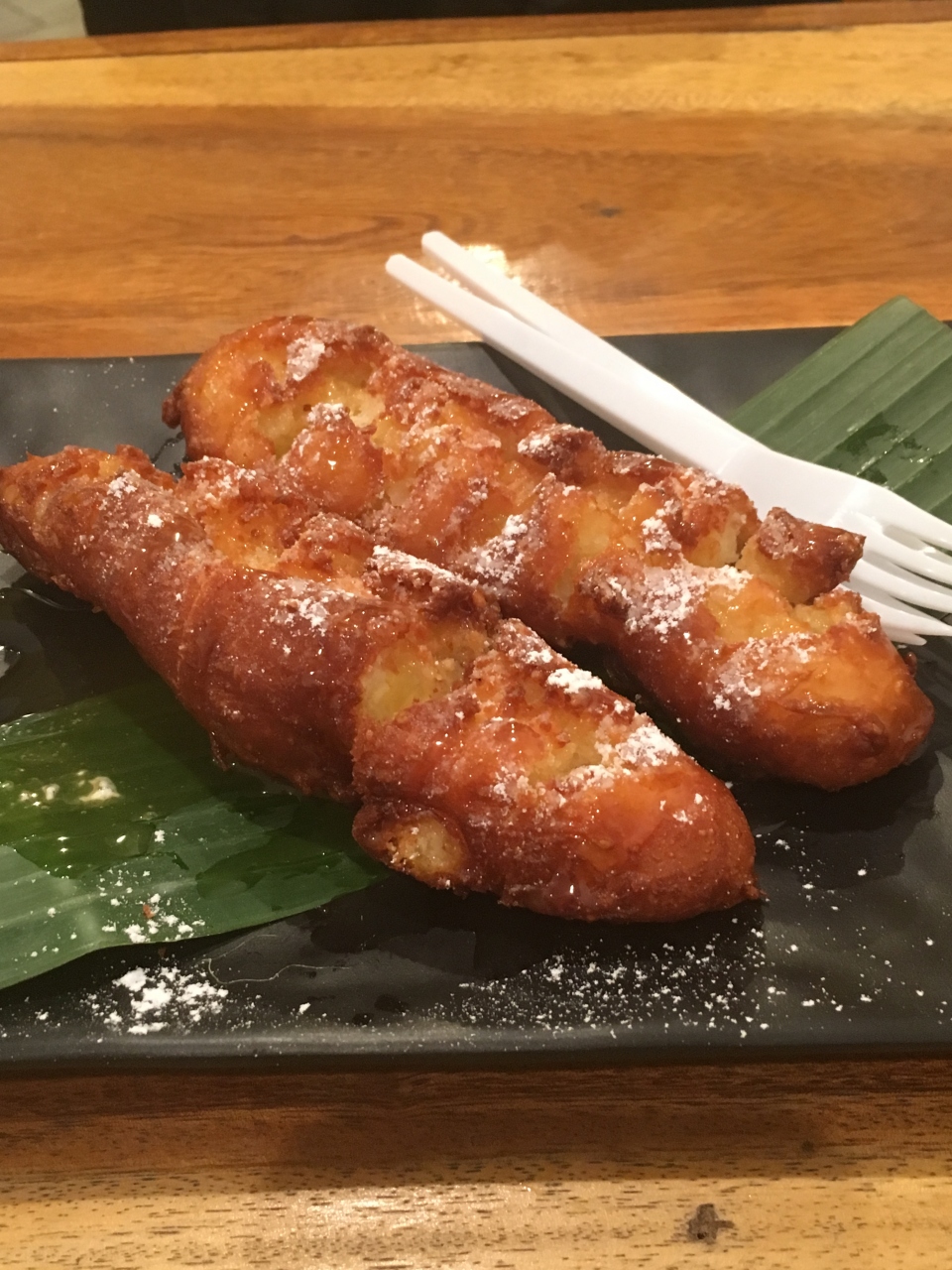 バナナに小麦粉まぶして単純に揚げただけだと思っていたけど、しっかりと生地でコーティングされていて表面はカリっと、中のバナナはトロトロの甘み。