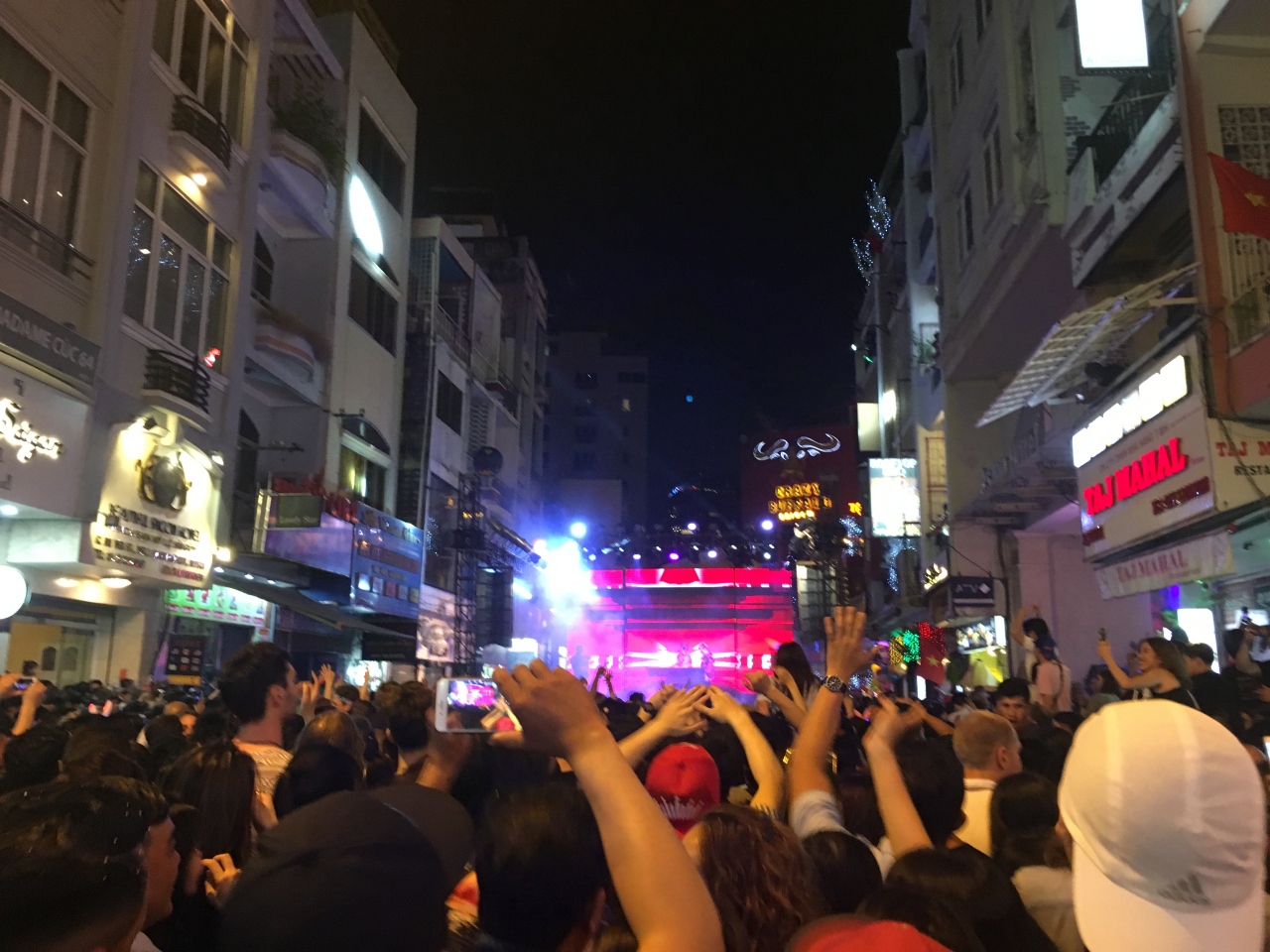 ちょうど年末年始、大晦日のブイビエン通りではカウントダウンライブのステージを作ってました。