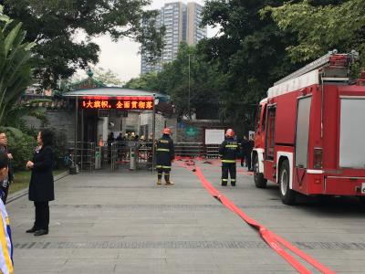 到着してチケット売り場を探していると消防車が停まっていました。