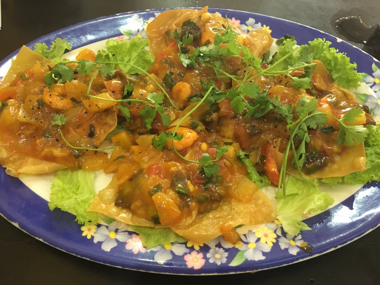 少し時間を置いて揚げワンタン登場。