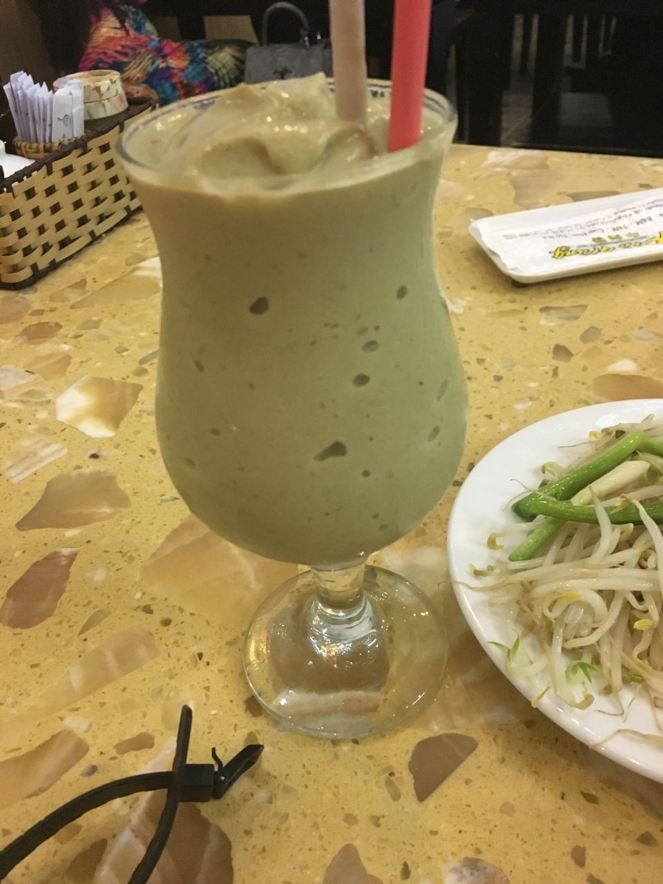 しかし間違ってバナナシェイクが出てきたので、再注文したけど狭いので座る場所がない。