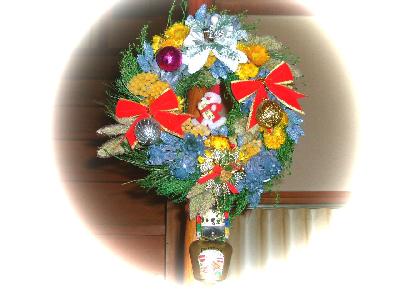 ローデンブルグのマルクト広場に出ていたクリスマスグッズを売っていたお店で、リースを5ユーロで購入。