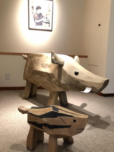 絵のほかに、おもちゃや木で作った猪の親子など、遊び心のある作品が展示されていて楽しかったです。