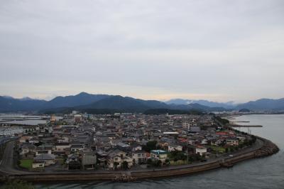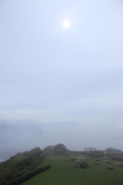 駐車場からすぐの展望台からの眺めは、煙っていて水墨画のようでした。