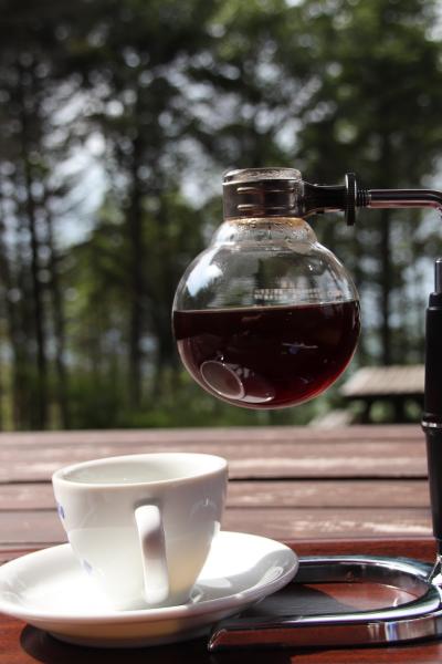 山小屋、といった感じですが、テラスでドリップしたコーヒーを飲んでいると、風が気持ちよく、眺めも良くて最高でした。