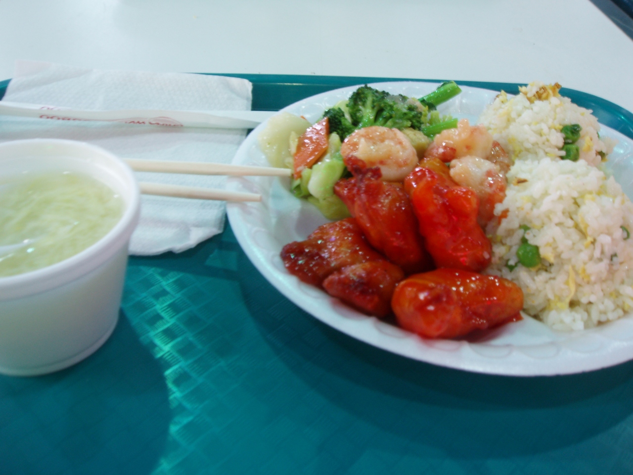 私たちは中華にしましたが、大体どのお店も2種類のおかずだと4.50$程度でした。