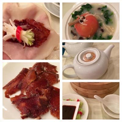 ハーフの北京ダック2種は(ライスペーパー包とレタス包み)濃すぎない日本人好みのあっさり味、歯ごたえよろしい青菜のお味噌炒め、プリプリ海老のフリッター、酸味度合が好みだったトマトの野菜詰め、タピオカや柑橘系(ザボン?)入りの甘くて爽やかなマンゴーミルク♡