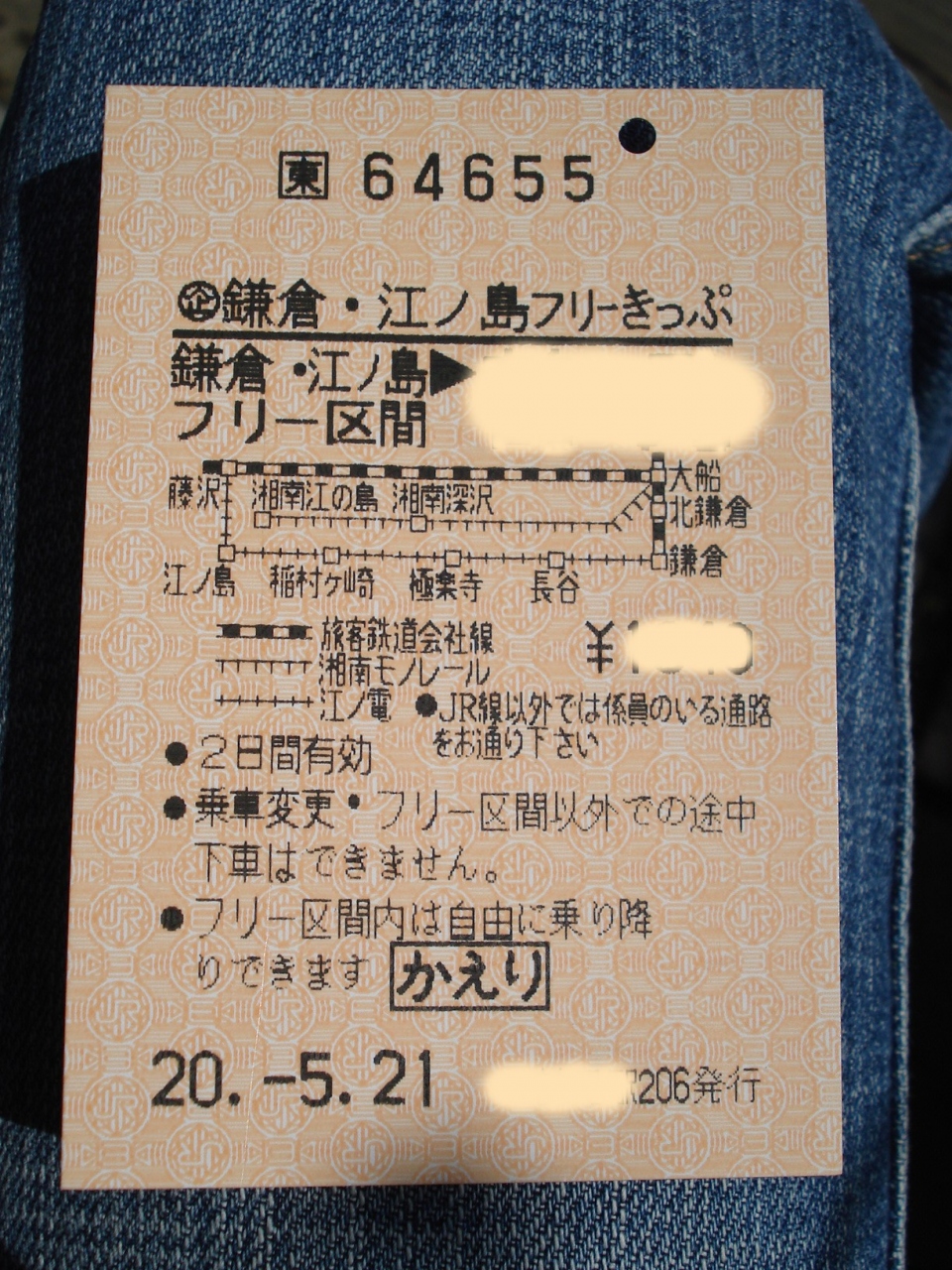 最寄り駅の往復+鎌倉・江ノ島エリアのJR、江ノ電、湘南モノレールが乗り降り自由で2日間有効です