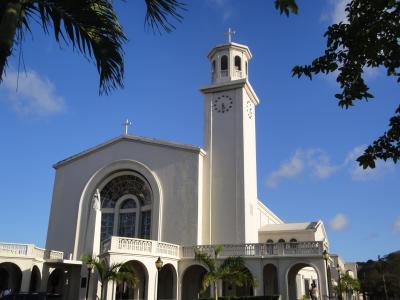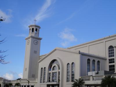赤いショッピングバスを利用して、アガニアショッピングセンター→ハガニア大聖堂→ラッテストーン公園→チャモロビレッジというコースで歩いて観光しました。