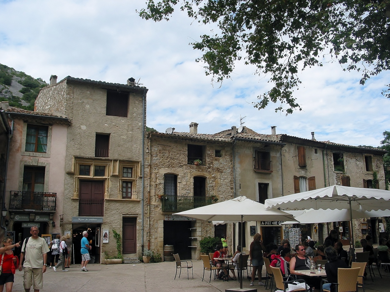 フランス・中央山岳地帯の、南の外れに位置する「フランスの美しい村」「サン・ギレム・ル・デゼール」の村の広場にあります、村は、「フランスの美しい村」の中でも、かなり人気の村なので、かなり辺鄙な場所ながら、観光客も、わりと多いです。