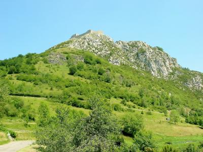 中世、キリスト教世界における最大の異端「カタリ派」が、アルビジョワ十字軍(北フランス軍)によって、追い詰められて、立て篭もった、山の上の城砦です (1244年落城、200人以上のカタリ派が、カソリックへの改宗を拒んで、火刑に処されたとか) 。