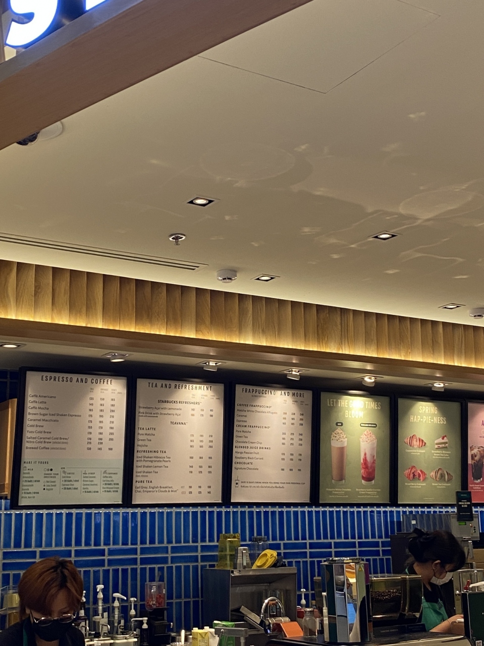 ドリンクの価格は日本と変わらないです。タイのスタバグッズは、日本よりかわいいデザインのものが多く、お土産にもおすすめです。マグカップなどお土産に買うのにいいです。出国前のエリアにあるので、嵩張るものは荷物に入れてチェックインできます。