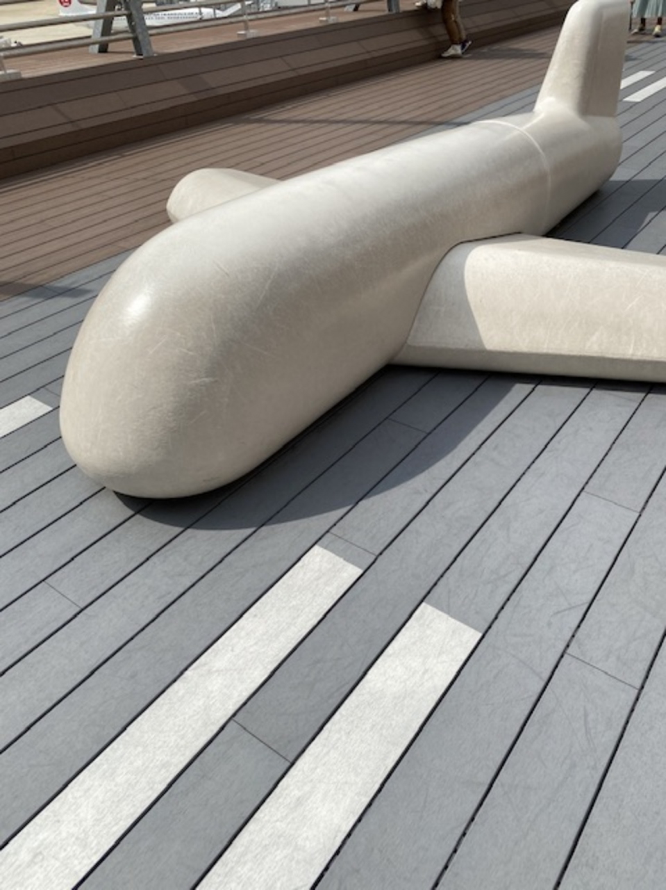 飛行機が目の前に見えるだけでなく、子供が乗って楽しめる飛行機型の柔らかいオブジェが置いてあります。その目の前には座るスペースもありは、大人は子供と飛行機を眺めながらのんびりくつろぐことができます。ほんの30分のつもりが子供が夢中になり、ギリギリまでこちらで過ごしました。