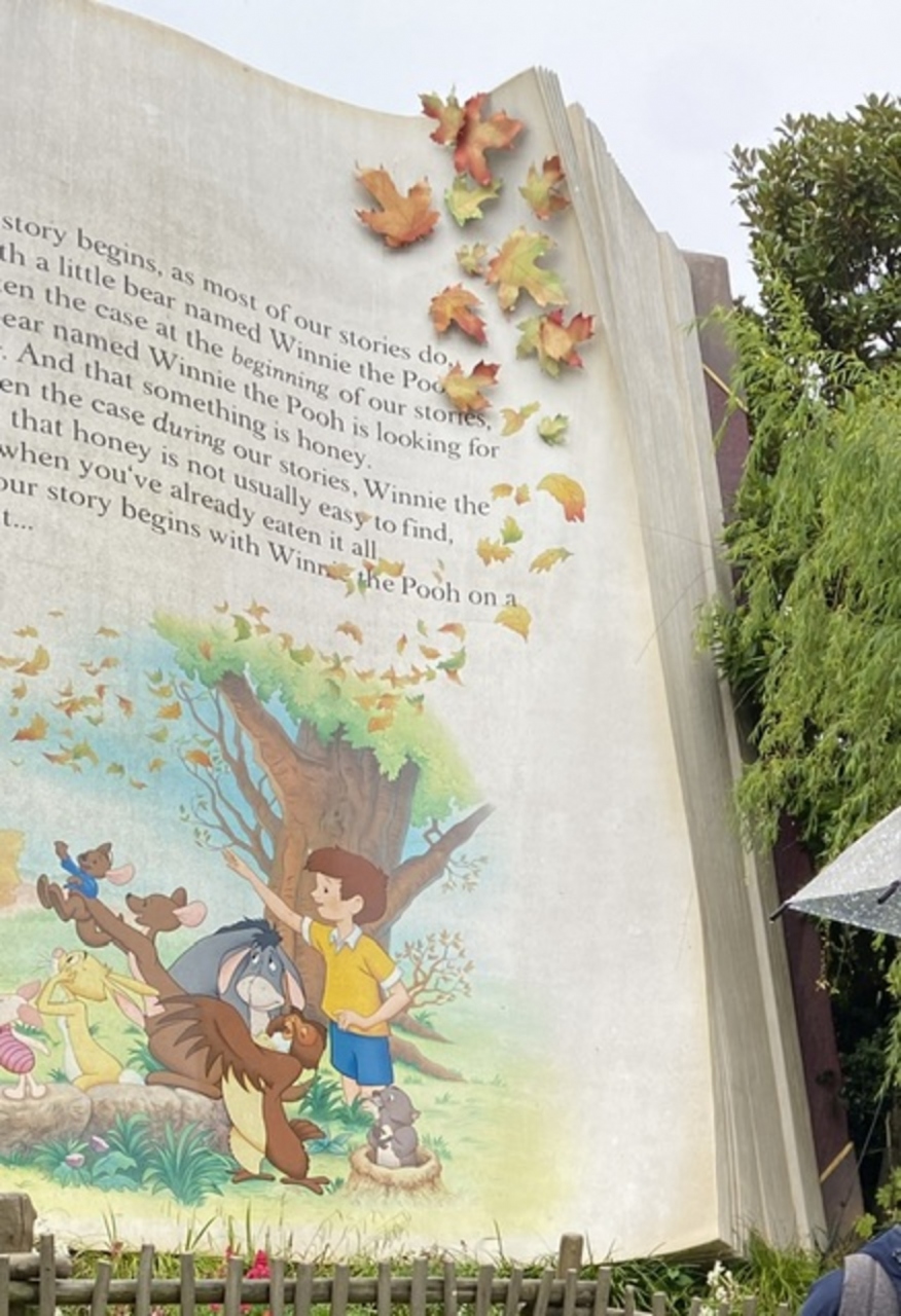 スムーズに動くハチミツポット型のライドに乗ってプーさんの森を冒険するアトラクションです。バウンスしたり、風を感じたり、香りを感じたり、五感で楽しめます。待っている列は、プーさんの本になっているので読みながら進むとよりストーリーがわかります。