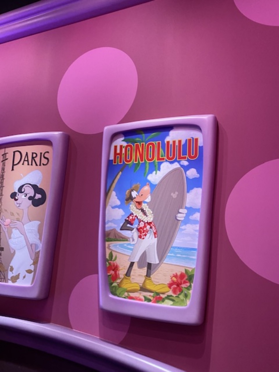 ミニーマウスと写真が撮れます。衣装は季節によって変わります。ミートミッキーに比べると並ぶ列の仕掛けは少ないですが、じっくり観察したり、写真を撮りながら進むのは楽しいです。隠れミッキーもいくつかあります。