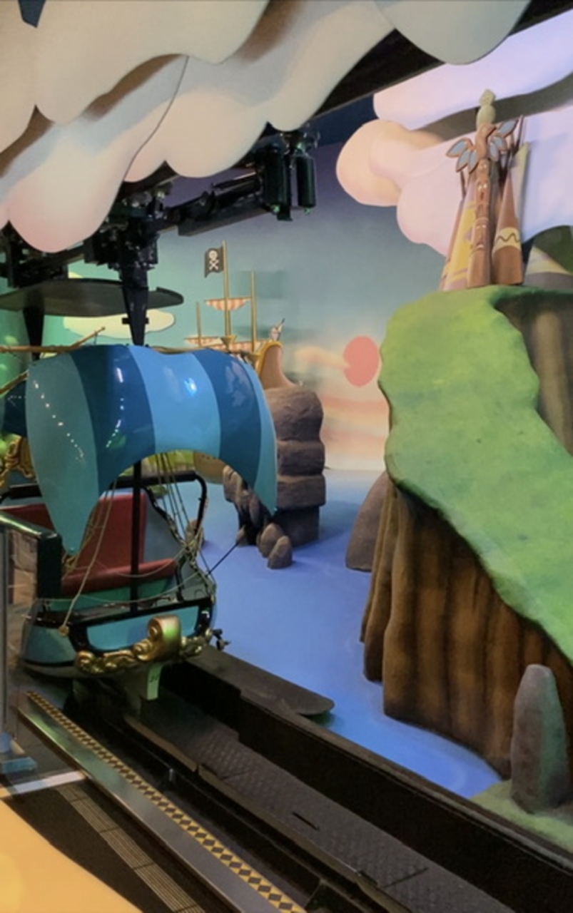空飛ぶ船に乗り、ピーターパンの世界を上から眺めながら楽しむアトラクションです。ロンドンの街並み、ビッグベンはよく観察してみてください。ピーターパンがいるかも。怖いシーンがないので小さいお子様にもおすすめです。
