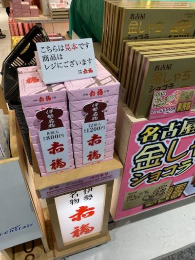 出発ロビーの階にあります。お土産からお弁当、飲み物、ヨーグルトまで揃うお店です。定番の赤福もあります。入り口にあるのはサンプルなので、レジ横の在庫から購入します。夕方遅い時間になると売り切れてることもあります。