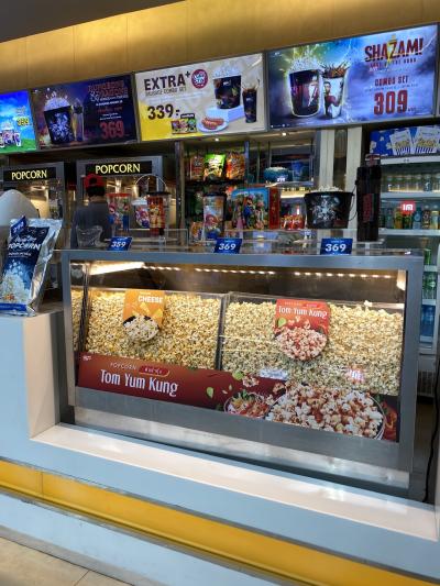 最上階には映画館があります。ポップコーンの味は4種類。トムヤムクン味があったので購入してみてみました。(ポップコーンは映画館に入場せずに購入できます。)これだけスーパーなどで販売して欲しいぐらいおいしかったです。