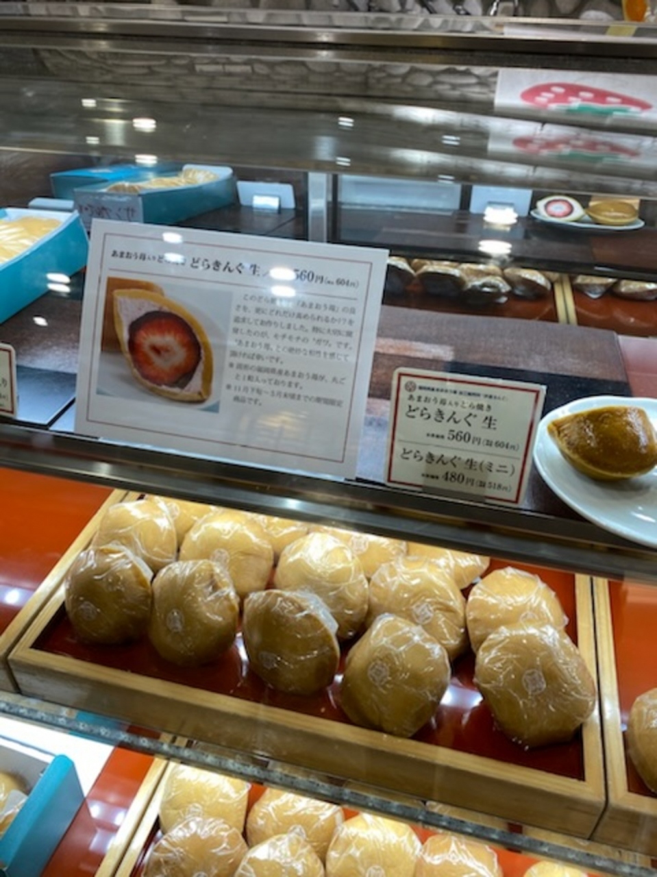 • あまおうが一粒はいってる、生どらはボリューム満点!