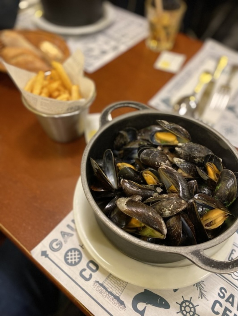ココットいっぱいのムール貝を食べられる、ファミレススタイルのお店です。どの店舗でも安定した味が楽しめます。英語は、店員さんによって通じたり通じなかったりです。英語メニューは、QRコードを読み込むと見られます。