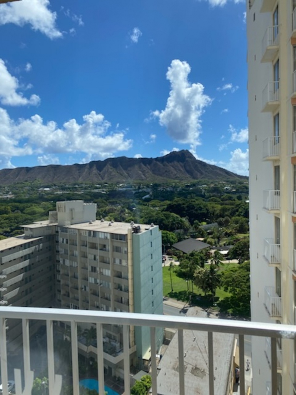 ワイキキ中心部からは、離れていますが、十分徒歩圏内です。カラカウア通りに面しているので、夜の散歩もそんなに危なくないです。設備はやや古めですが、お湯などは問題なく出るレベルです。エレベーターは、ルームキーをかざして使用するタイプなのでセキュリティもしっかりしています。