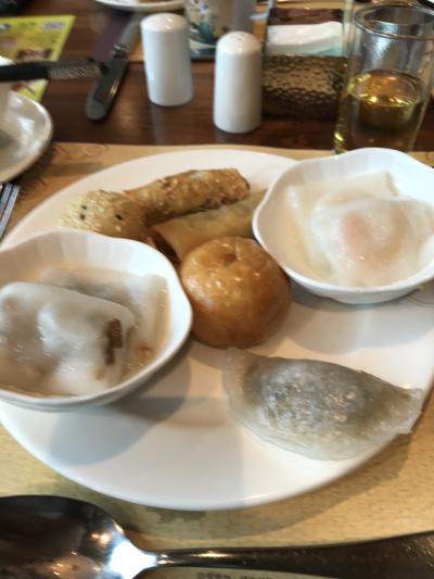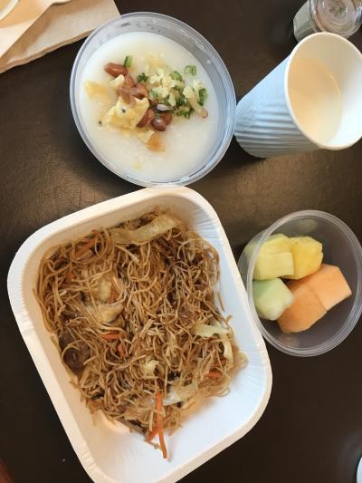 朝ごはんはチャートルームカフェでテイクアウトしてお部屋で食べました。焼きそばのセットはおかゆ、フルーツ、焼きそば、豆乳のセットです。朝はそんなに食べないので、家族で分けるのにちょうど良かったです。- 旅行時期