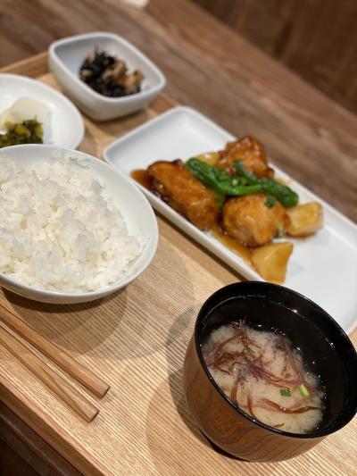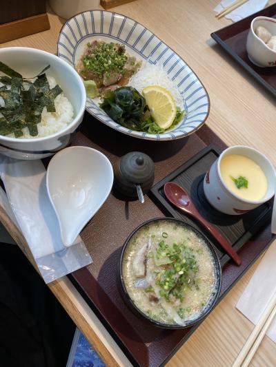 お魚が食べたくてこちらのお店へ。マグロ丼などもありますが、関東ではなかなか食べられないゴマサバ定食にしました。定食と丼がありますが違いは、ご飯の上に乗ってるか乗ってないかだけだそうです。お味噌汁は、プラス250円で豚汁に、プラス350円で貝汁に変更できます。豚汁も貝汁も具沢山で変更して正解でした。