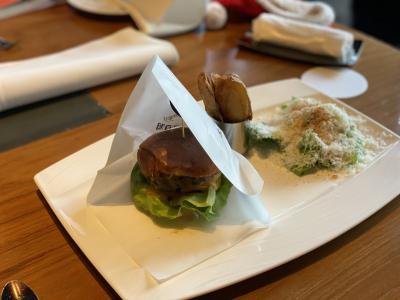 子供は、子供用のメニューからハンバーガー¥2000を頼みました。ハンバーガー、シーザーサラダ、ポテト、デザートがセットです。ボリュームがあるので小学校低学年ぐらいまでは残してしまうかもしれません。ハンバーガーのお肉は、ジューシーで大人が食べても満足するお味でした。- 旅行時期