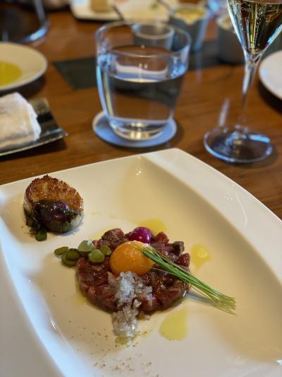 前菜のサラダにチーズがたっぷりかかっていてとてもおいしかったです。タルタルも新鮮でさすがの品質でした。