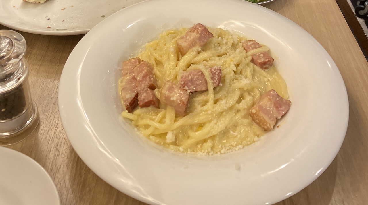 モチモチのパスタがおいしいお店です。ランチは、パンとデリ、パンとサラダを追加料金で足すことができます。(パンなしのデリのみサラダのみも可能!)デリは、日によって変わるので内容を聞いてからつけるか決めています。