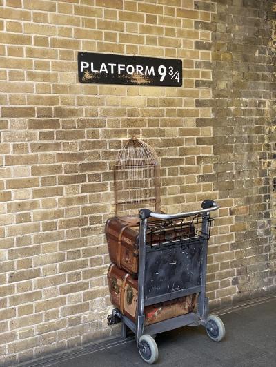 ハリーポッターで有名な9と3/4番線のフォトロケーションです。改札の外にあるショップに併設されています。ロープいっぱいに並んでいて30分待ちました。マフラーや杖は貸してもらえます。カメランが撮った写真はすぐに店内で確認→購入できます。自分のスマホでも撮れますが、スタッフはスマホでは撮ってくれないので並んでいる人に頼むか同行者同士で交代して撮ります。初めは写真は買わないつもりでしたが思いの外仕上がりがよく、買ってしまいました。プリント4枚セット20ポンドは、全データがもらえてお得です。