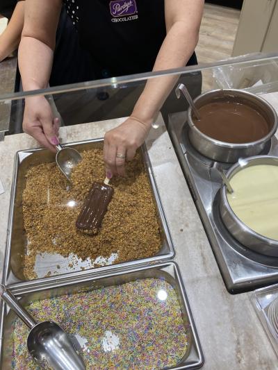 カナダ生まれのチョコレート屋さん。紫を基調とした店内には、所狭しといろんな種類のチョコレートが並びます。パッケージもかわいいのでお土産にもぴったりです。アイスクリームは、その場でチョコレートをディップしてくれます。6.99ドルとなかなかのお値段ですが、おいしかったです。