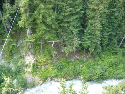 ハーネスを付けて渓谷に渡されたケーブルを伝い滑っていきます。
