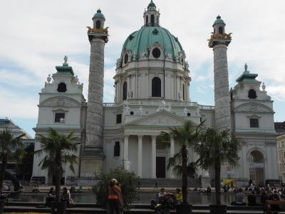 カールスプラッツ駅の近くにあり、バロック様式で建築され、2本の大きな柱とドーム型の屋根が特徴の教会です。