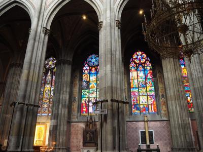 美しいステンドグラスが有名で、まるで絵画のような色彩豊かなステンドグラスが美しかったです。