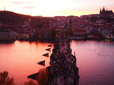 特に夕方から夜にかけてカレル橋方面の展望台は非常に混雑していて、すれ違うのもやっとですが、やはり夕暮れや夜景のカレル橋やプラハ城はとても美しいので、一見の価値ありです。