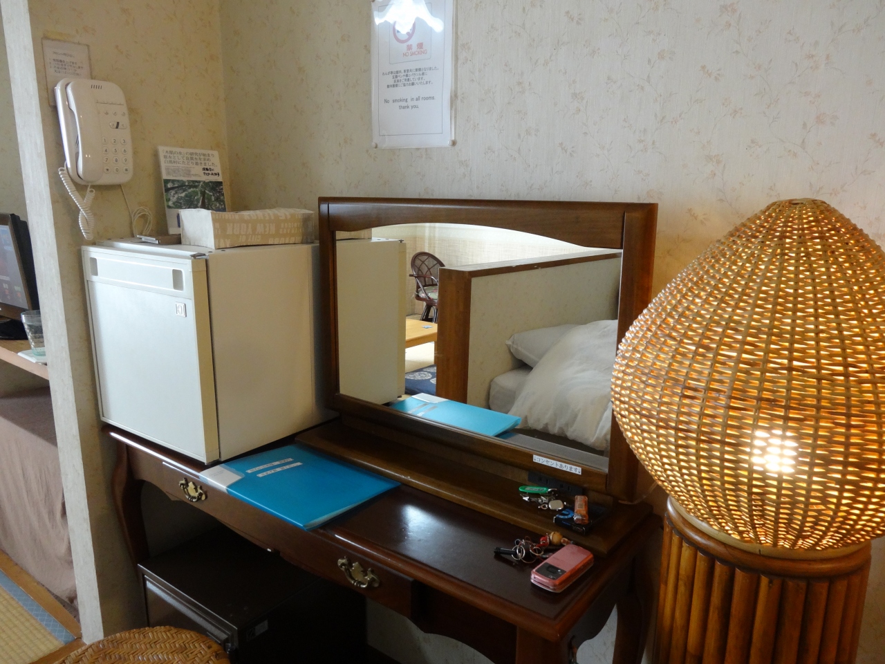 部屋の冷蔵庫はとても小さく、お茶しかありませんでした。