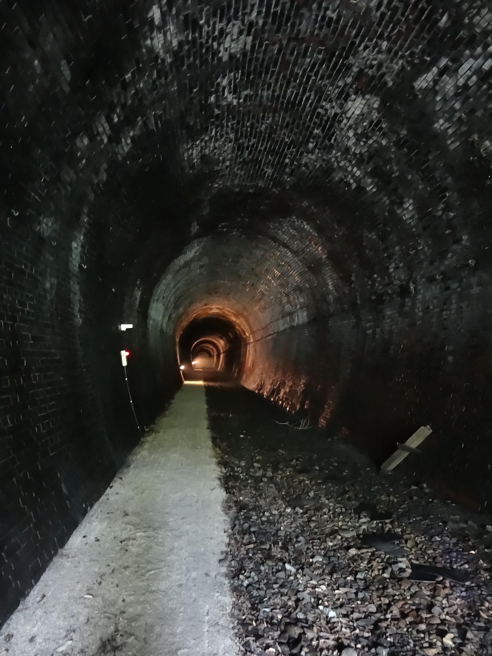 ながーい階段をひたすら降りて、レンガトンネルに到着。